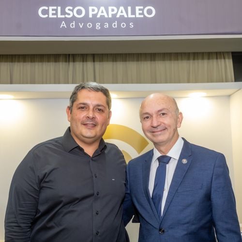 O advogado Celso Papaleo e o presidente da Sociedade Brasileira de Anestesiologia (SBA), Marcos Albuquerque, durante a 54ª Jornada de Anestesiologia do Sudeste Brasileiro (JASB), que aconteceu no Centro de Convenções de Vitória.