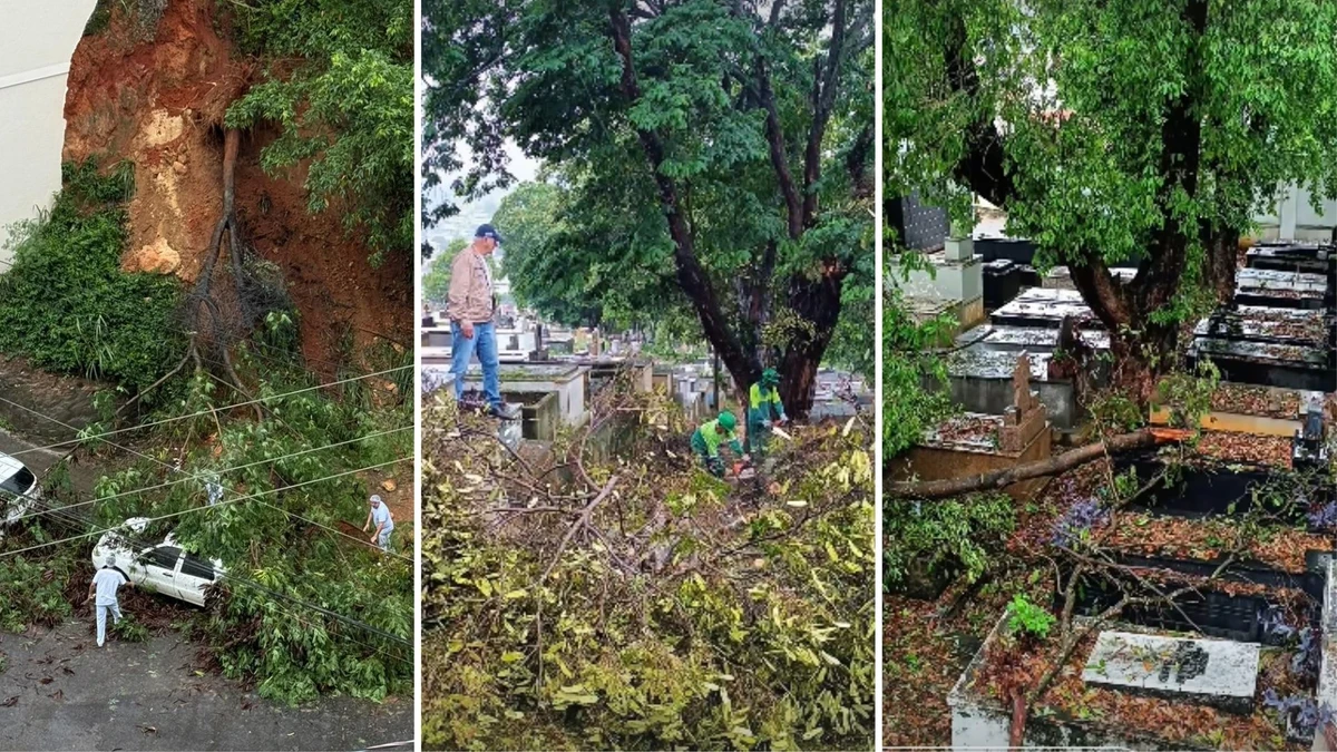 Árvores caem e atingem sepulturas em cemitério de Cachoeiro após chuvas