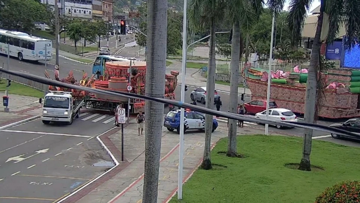 A passagem de dois carros alegóricos complicou o trânsito na descida da Segunda Ponte, em Vitória, no início da manhã desta sexta-feira (6). As estruturas ficaram paradas por um período na Avenida Roberto Ewaldo, na altura da rodoviária, prejudicando o tráfego de veículos. Por volta das 6h45, a prefeitura da Capital informou que a via já havia sido liberada. Motoristas que passam pela Cinco Pontes informaram a reportagem da TV Gazeta que também acabaram enfrentando congestionamento porque a rota foi usada como desvio. >