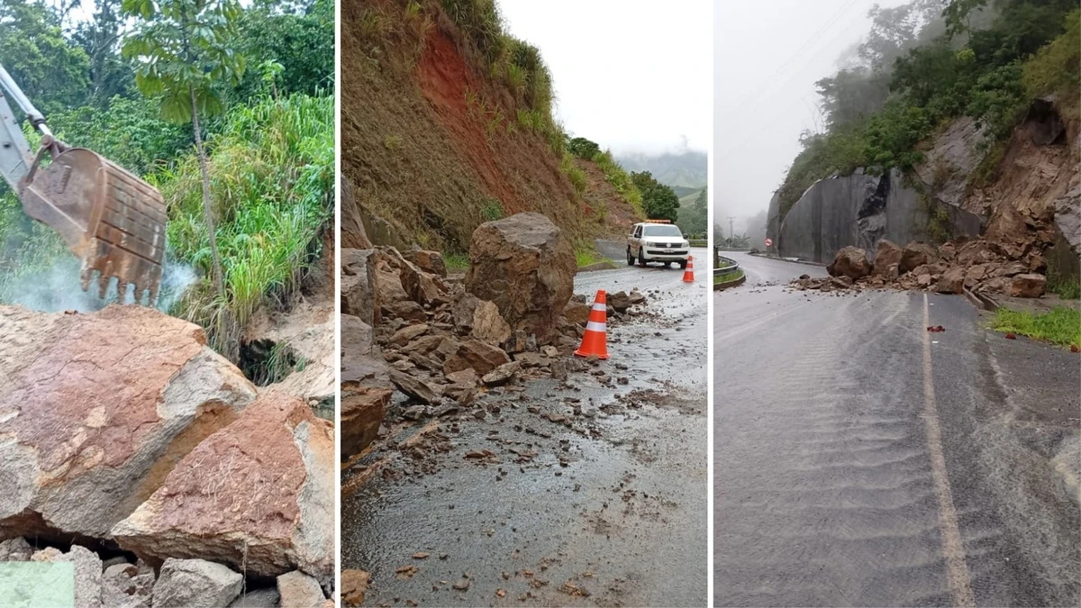 Um deslizamento de pedras atingiu a ES 165, na Serra de Pontões, em Castelo, no Sul do Espírito Santo, na tarde de segunda-feira (5), e interdita parcialmente a via até a manhã desta terça-feira (6). A rodovia liga o município a Muniz Freire. Segundo a Defesa Civil Municipal, o trecho foi sinalizado, e o Departamento de Edificações e de Rodovias do Espírito Santo (DER-ES) foi acionado para a retirada das rochas.