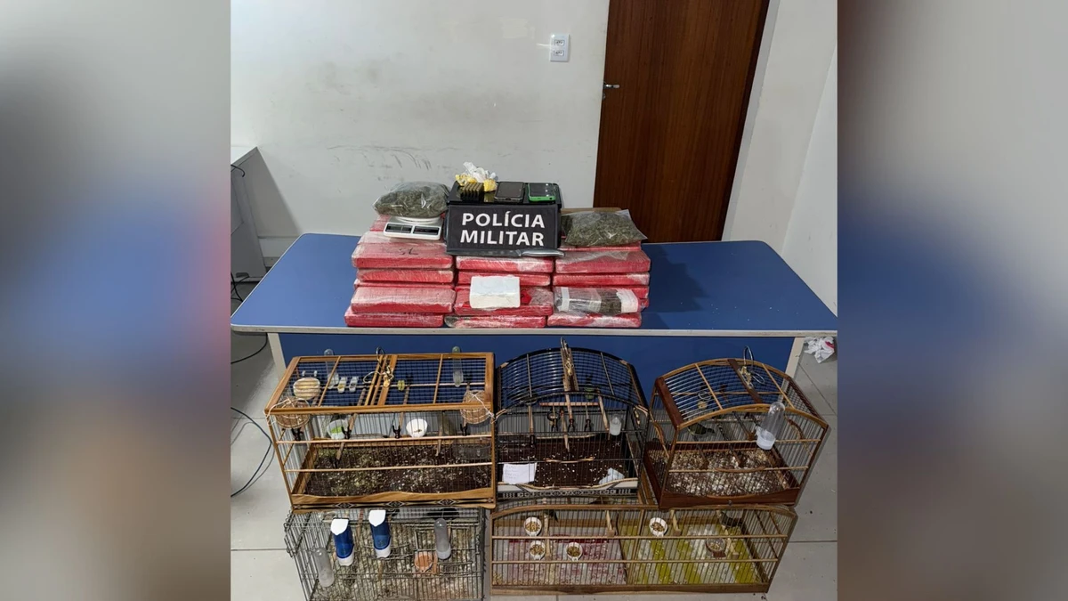 Ao chegarem à residência com portão entreaberto, os militares notaram várias gaiolas com pássaros silvestres e abordaram os suspeitos, que tentaram fugir. No imóvel, foram encontrados tabletes de maconha, cocaína, balanças de precisão e munições, distribuídos em diferentes cômodos. A mulher afirmou não saber da presença dos entorpecentes no quarto ocupado pelo homem. Os 14 pássaros apreendidos foram entregues ao ICMBio.>
