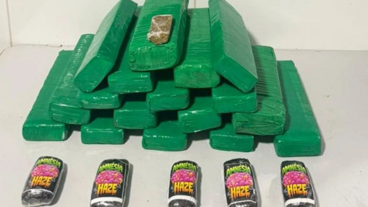 Ao todo foram encontrados 19 tabletes de maconha, cinco unidades de pak (substância mais sofisticada que o haxixe, considerada "gourmet") e um pequeno pedaço de maconha. Conforme apuração da TV Gazeta junto à Polícia Militar, o valor estimado do material apreendido é de aproximadamente R$ 73 mil.>