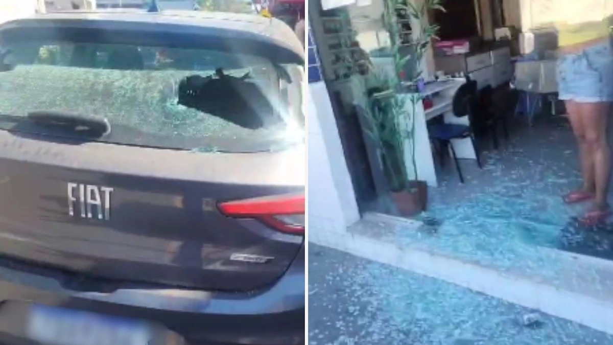 Até o momento ninguém foi preso. Uma imagem feita por quem estava no local mostra um carro com dois furos no vidro da traseira do veículo feitos pelos tiros. Conforme apuração da Quézia Prado, da TV Gazeta, as balas atingiram o automóvel, que além dos buracos, ficou com o vidro trincado. A PM confirmou também que a porta de um comércio acabou estilhaçada. A Polícia Civil informou que a ocorrência está em andamento no plantão vigente do Departamento Especializado de Homicídios e Proteção à Pessoa (DEHPP).>