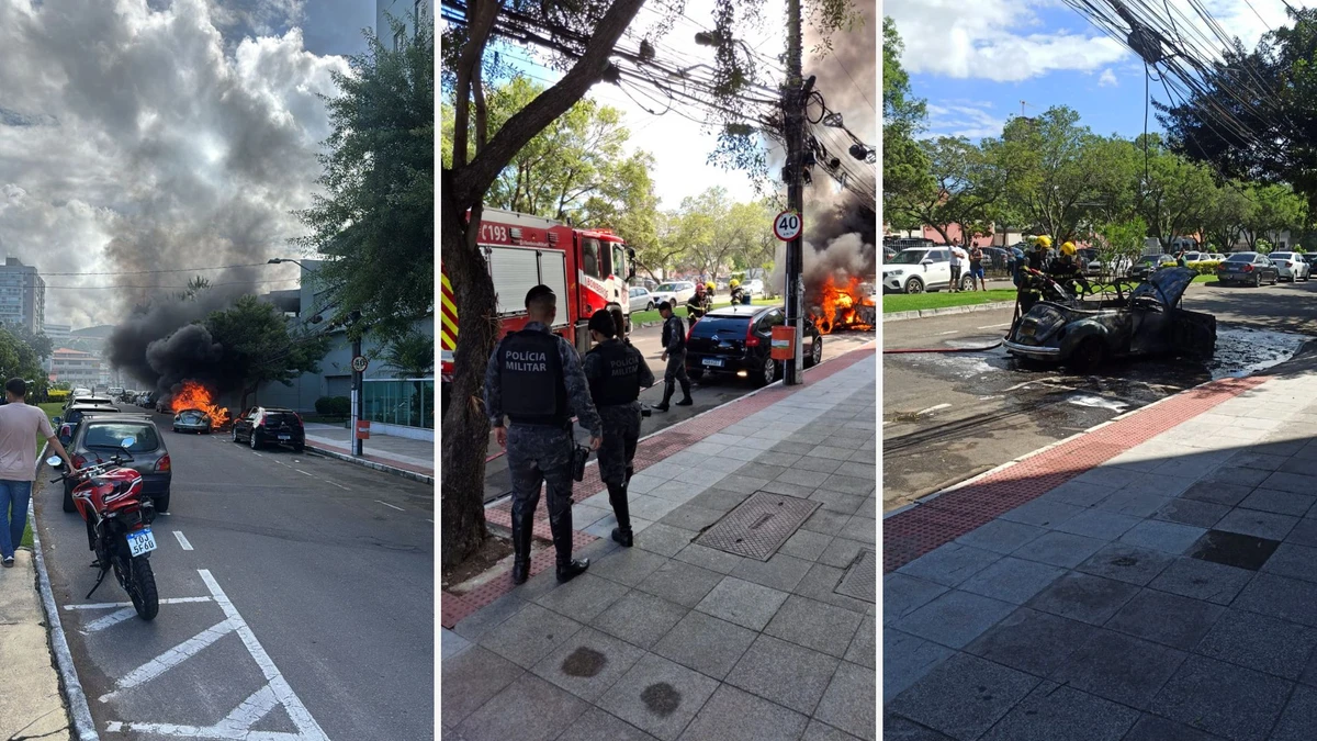 Fusca pega fogo em frente a prédio de Bento Ferreira em Vitória