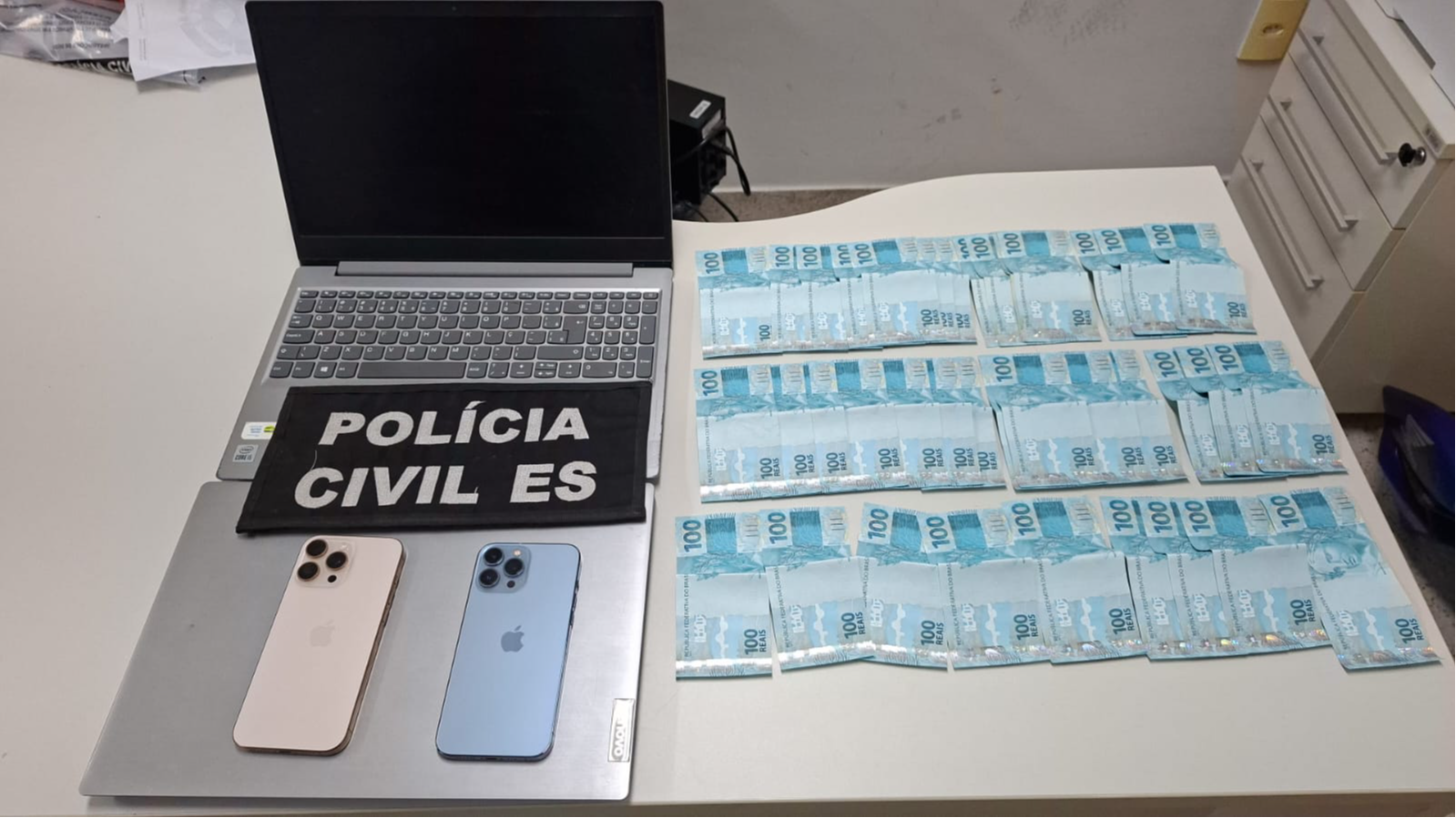 Um homem de 26 anos foi preso, nesta quinta-feira (25), durante a operação 'Game Over' por suspeita de extorsão e agiotagem em um apartamento na Praia do Morro, em Guarapari. Segundo a Polícia Civil, a investigação começou após um boletim de ocorrência ser registrado contra ele no dia 3 de setembro. O nome dele não foi informado.>