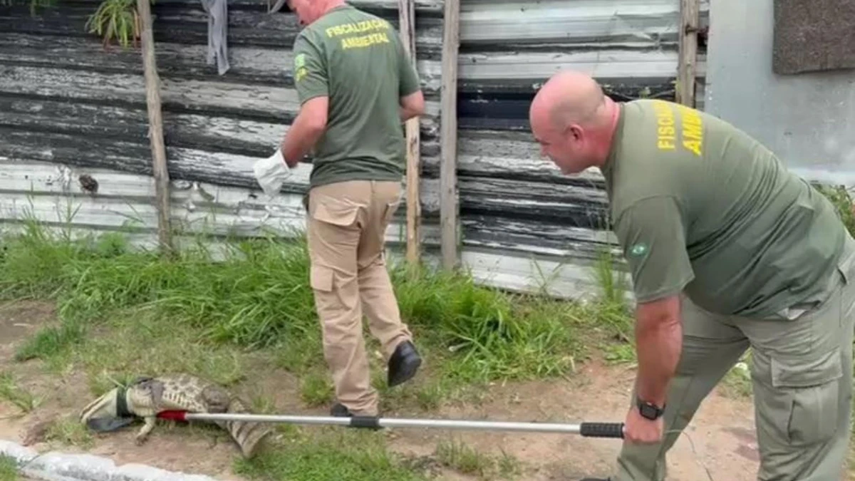 Jacaré é encontrado no meio da rua em Bicanga na Serra
