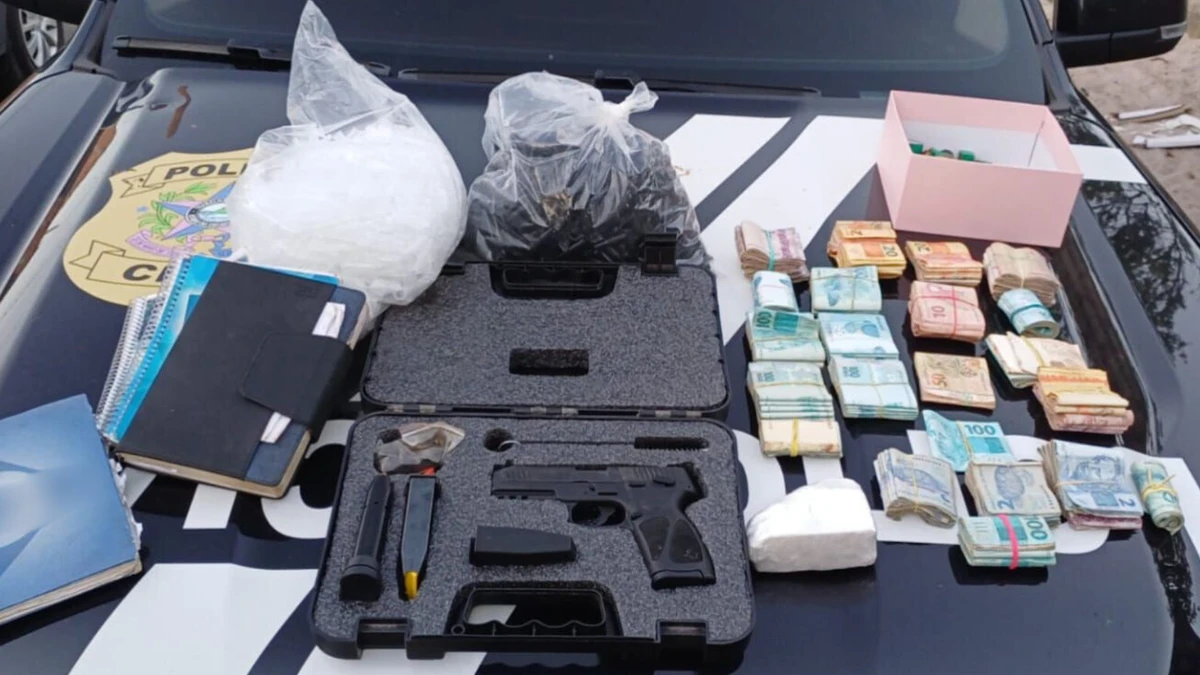 Cerca de R$ 242 mil em dinheiro e cheques, armas e drogas foram apreendidos em Anchieta, no Litoral Sul do Espírito Santo, na noite de terça-feira (23). Segundo a Polícia Civil, três suspeitos, incluindo o chefe do grupo criminoso, foram autuados em flagrante por tráfico de drogas e associação criminosa. Eles foram levados para o sistema prisional. Um adolescente também foi apreendido.>