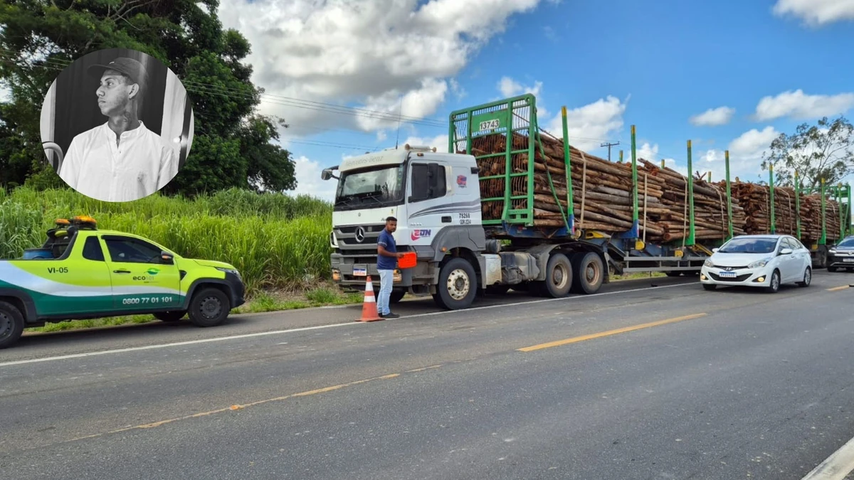 Motociclista morre ao bater em carreta de eucalipto em Linhares
