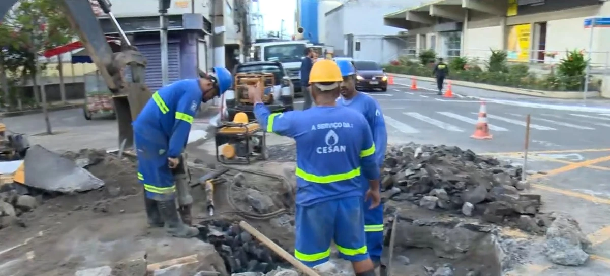 Em nota, a Cesan informa que a previsão é de que os trabalhos sejam concluídos na tarde desta quarta. Uma faixa da via está interditada para a execução dos trabalhos. A Cesan está à disposição da população pelos canais de atendimento: telefone 115 ou WhatsApp (27) 3422-0115.>