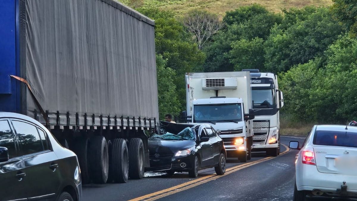 De acordo com a PRF, um carro de passeio colidiu na traseira de uma carreta, por volta de 17h25. O passageiro do veículo menor teve morte confirmada no local. Outra pessoa foi socorrida com vida para um hospital da região. >