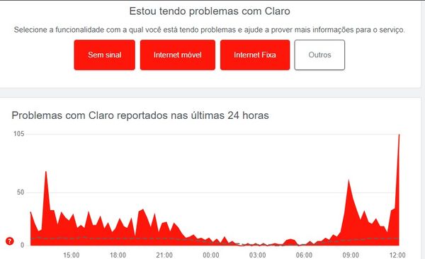 Usuários da operadora Claro relatam instabilidade do serviço nesta sexta-feira (7) na Grande Vitória. A maior parte envolve clientes que moram em Vitória e Vila Velha. Segundo o site Downdetector — especializado em monitoramento de serviços, as reclamações de oscilações começaram por volta das 9h, mas, ao meio-dia, as reclamações dispararam.>