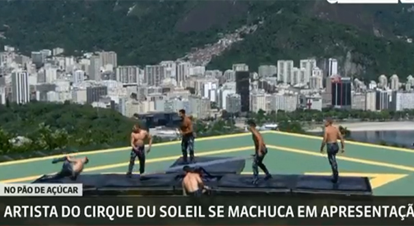 Um acrobata do Cirque du Soleil sofreu um acidente durante uma apresentação da companhia na manhã desta quarta-feira, no Morro da Urca. O artista, que ainda não teve o nome divulgado, mas que seria belga, teria torcido o joelho durante uma queda no número "Teeterboard", logo no início do show, que era aberto ao público.>