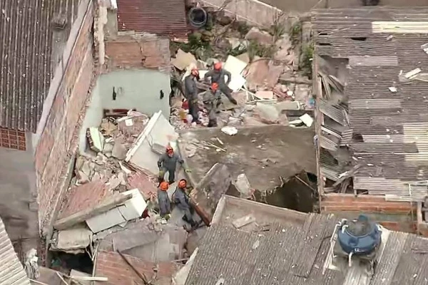 Diversas equipes do Corpo de Bombeiros, da Defesa Civil e da Polícia Militar atuaram no local, que passa por vistorias para avaliar possíveis danos nas construções vizinhas. Várias pessoas estão fora de casa. Segundo os bombeiros, a casa que colapsou tinha dois pavimentos, e houve uma explosão no andar debaixo, que teria sido provocada intencionalmente com uso de gás.>