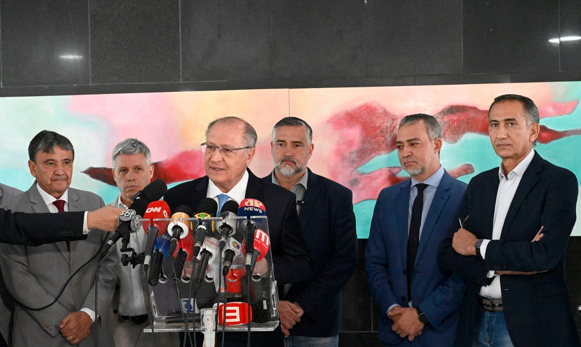Alckmin e Pimenta falaram a jornalistas no Palácio do Planalto ao lado dos ministros Wellington Dias (Desenvolvimento Social), Paulo Teixeira (Desenvolvimento Agrário) e Waldez Góes (Integração e Desenvolvimento Regional).>