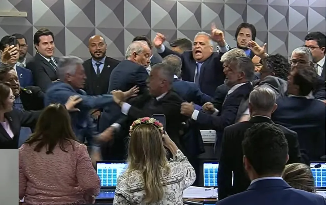 Após a votação, parlamentares entraram em confronto. Aliados do governo tentaram protestar contra a aprovação na mesa diretora e a oposição reagiu. A sessão foi suspensa e não houve feridos.>