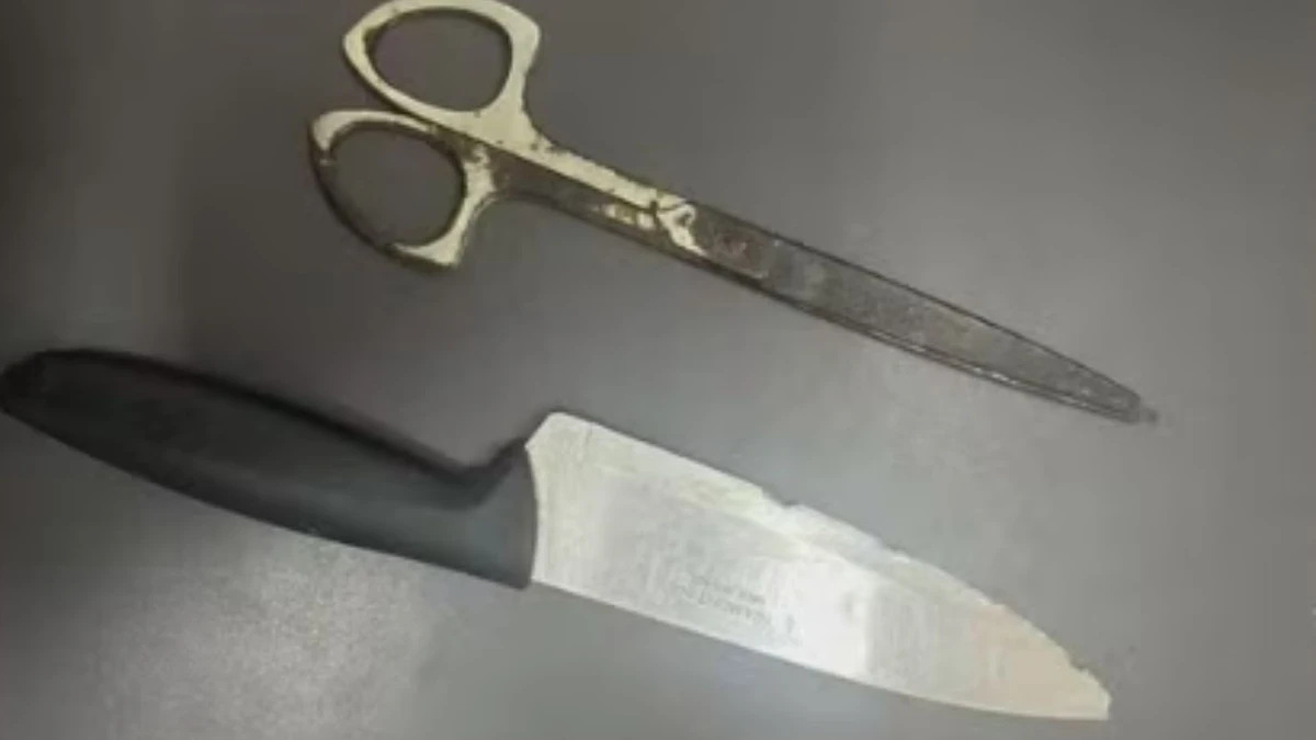 O agressor puxou o cabelo da mulher e segurou em seu pescoço. Ainda segundo o relato, ele usou uma faca e uma tesoura para ameaçá-la de morte, enquanto caminhava sem parar pela casa. Enquanto isso, a mãe pediu para os filhos de 4, 7 e 14 anos se esconderem. Quando os militares chegaram, o homem estava no quintal prestes a fugir. A equipe o encontrou "completamente alterado" e o algemou, além de pedir para que ele mostrassem onde havia escondido as armas brancas usadas na ameaça.>