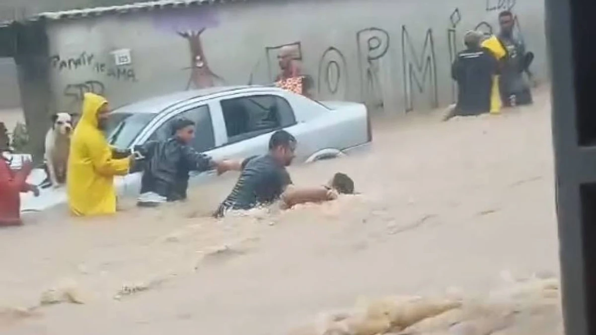 Um homem que era arrastado por uma enxurrada nesta quinta-feira (26) no bairro Condado, em Paraty, sul do estado do Rio de Janeiro, foi salvo por moradores que fizeram um cordão humano e conseguiram segurá-lo. Vídeos que circulam nas redes sociais mostram que três homens deram as mãos contra a correnteza para conseguir alcançar o morador carregado pela enxurrada. Depois de resgatado, ele foi levado a um local da rua onde a força da água era menor.>