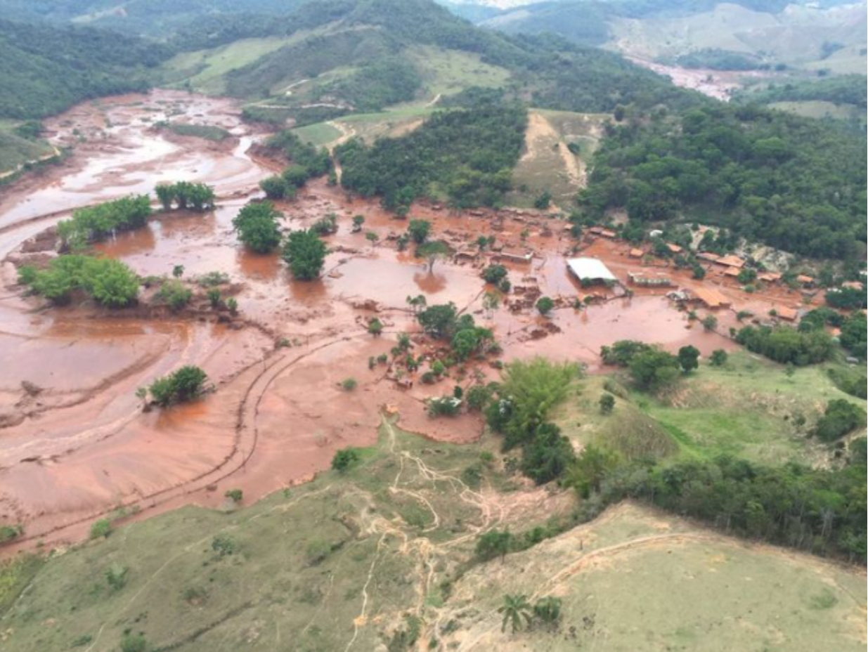 A barragem que se rompeu integrava um complexo minerário da Samarco. A tragédia ocorreu em 5 de novembro de 2015. Na ocasião, cerca de 39 milhões de metros cúbicos de rejeitos escoaram pela Bacia do Rio Doce. Dezenove pessoas morreram e houve impactos às populações de dezenas de municípios até a foz no Espírito Santo.>