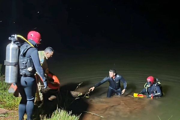 Equipes de resgate foram acionadas, por volta das 20h, e fizeram buscas aquáticas no local. Os bombeiros localizaram o veículo submerso, utilizando cordas e embarcações.>