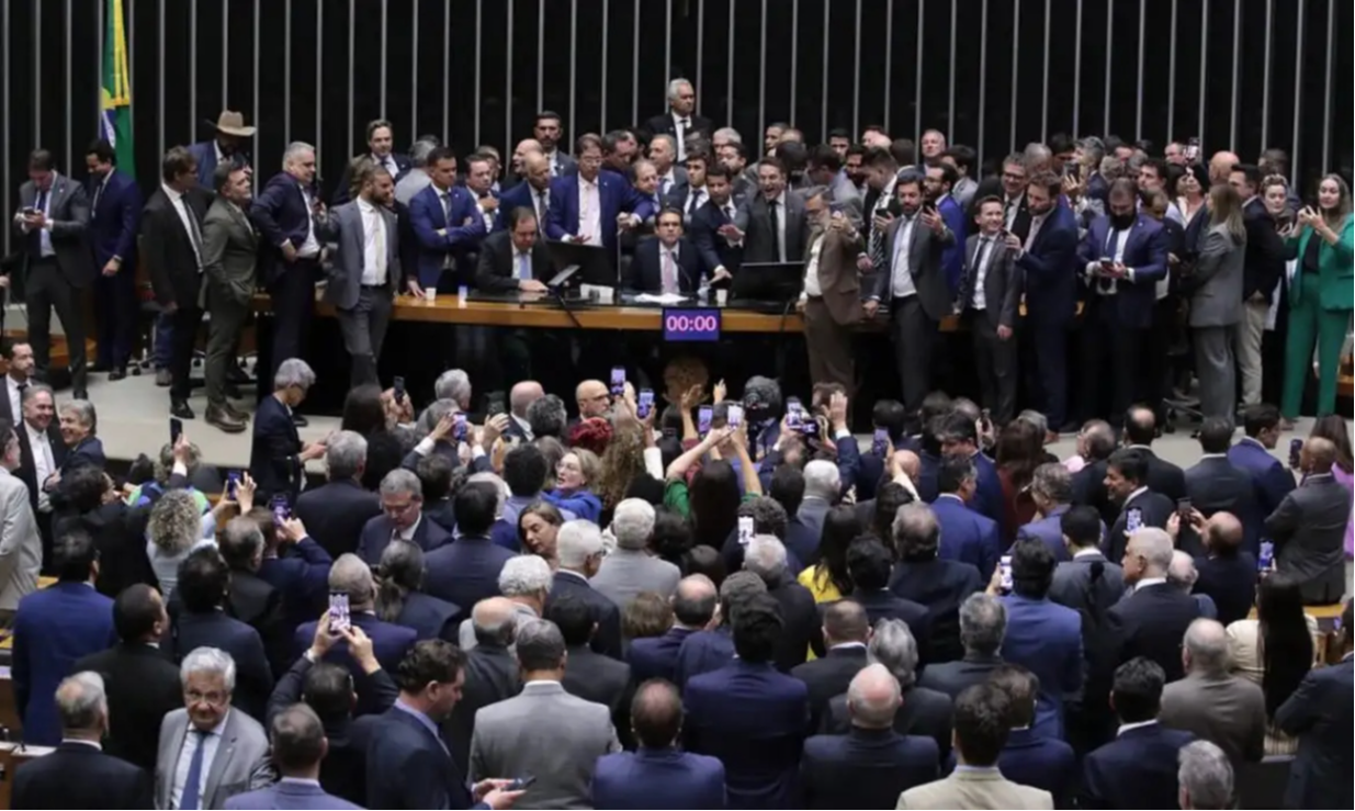 O líder do PL, Sóstenes Cavalcante (RJ), afirmou, após a sessão, que apesar de terem deixado a Mesa da Câmara, a oposição conseguiu um compromisso de que a anistia aos acusados de golpismo e o fim do foro privilegiado serão levados à votação. De acordo com deputados bolsonaristas, líderes de outros partidos concordaram em pautar a matéria.>