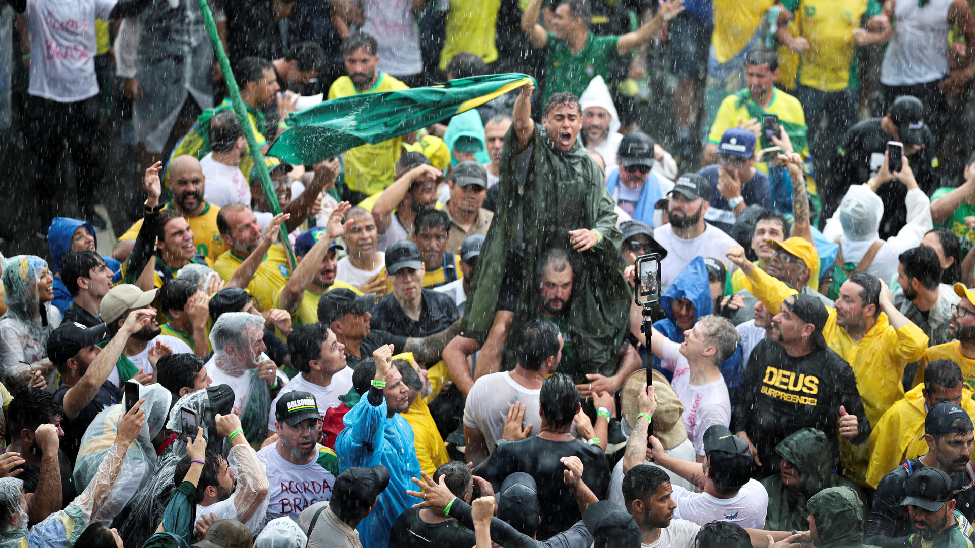 No evento desta quinta (17), em Goiânia, estudantes entoavam gritos contra Trump e Bolsonaro, além de enaltecimentos da soberania da América Latina. Entre eles, o coro de "sem anistia e sem perdão, eu quero ver Bolsonaro na prisão".>