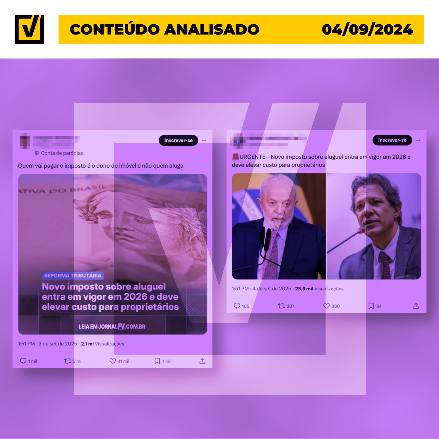 Conteúdo analisado: Posts a respeito das mudanças na cobrança de impostos sobre o aluguel que entram em vigor em 2026.>