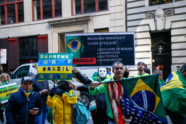 Houve cenas pitorescas. Um grupo integrado pelo ex-ministro da Fazenda Henrique Meirelles, que falou na sessão sobre economia do evento nesta terça (15), foi abordado na turística Times Square por bolsonaristas que tratou as pessoas como "ministros do Supremo", que precisariam "abrir o código-fonte".>