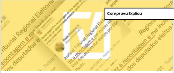 Outras checagens sobre o tema: Não foram identificadas outras checagens da veracidade de conteúdos publicados nas redes sociais sobre recontagem de votos. A decisão do TSE sobre a retotalização de votos na eleição para deputado federal em São Paulo suscitou, entre outras, reportagens do G1, Poder360 e UOL. O Comprova já explicou anteriormente a confiabilidade do sistema eleitoral no 1º turno, que os resultados das últimas eleições já foram validados e não aguardam análise judicial e o funcionamento da fiscalização do código-fonte das urnas eletrônicas.>