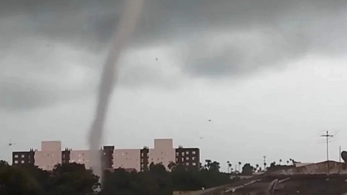 A Defesa Civil do Rio Grande do Sul confirmou a passagem de um tornado na cidade de Pelotas (RS) na quinta-feira (12). O fenômeno, registrado no bairro Fragata por volta das 10h45, causou danos em uma oficina mecânica. O tornado seguiu em direção ao bairro Areal antes de se dissipar. A prefeitura informou que foi registrada uma média de 40 mm de chuva em menos de meia hora, em torno de 30% do esperado para todo o mês, o que provocou alagamentos pontuais e o destelhamento de casas, principalmente nos bairros Bom Jesus, Dunas, Vasco Pires, Leocádia e Obelisco.>
