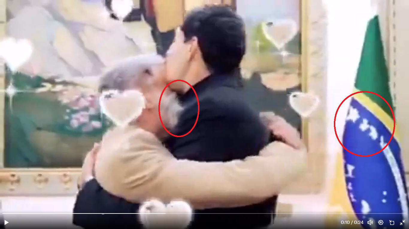 Conclusão do Comprova: É falso um vídeo que mostra um abraço entre o assessor-chefe da Assessoria Especial da Presidência da República, Celso Amorim, e o ditador venezuelano Nicolás Maduro. A gravação, manipulada por meio de Inteligência Artificial (IA), mostra diversas imagens distorcidas, incluindo um filtro de corações e uma música romântica ao fundo.>
