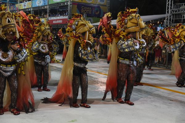 "A energia na avenida estava incrível. Acredito que escola fez um ótimo desfile, estou confiante que iremos subir para o grupo especial neste ano. O enredo era bem diferente do tradicional, acho que isso pode nos ajudar", opinou Tais Martins Gouveia, segunda porta-bandeira. >