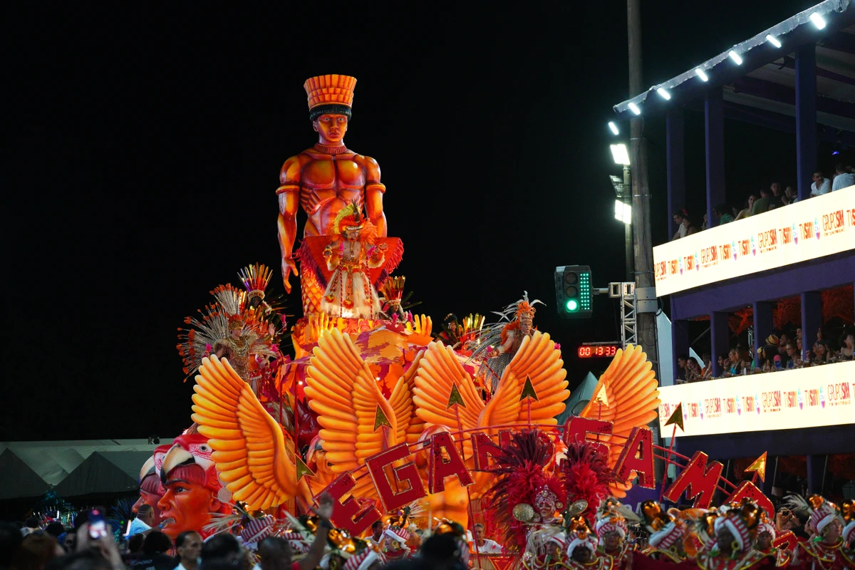 A escola de samba levou um desfile reafirmando a identidade popular, comunitária e ancestral, usando o carnaval como espaço de fé e celebração. A natureza também foi elemento central da apresentação, valorizando rios, florestas, ventos e animais. Esses elementos foram retratados como morada dos encantados, expressando a conexão espiritual entre o mundo material e o sagrado com o próprio Caboclo. >