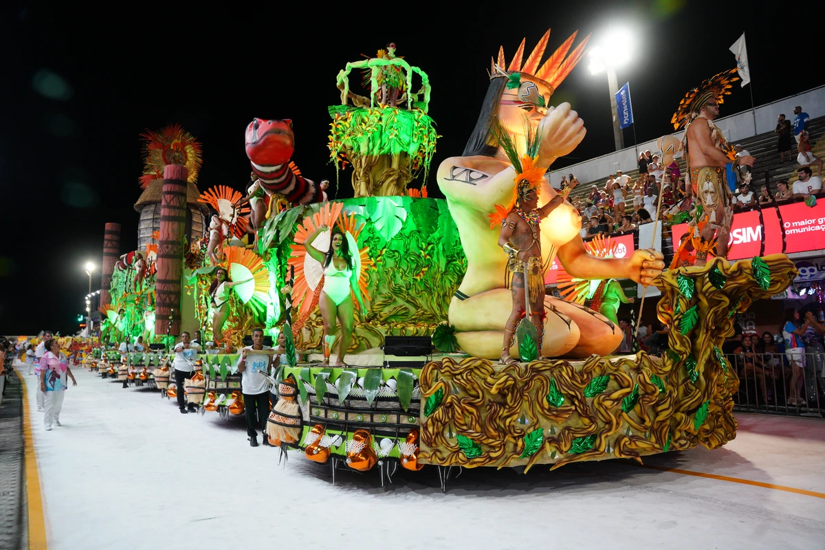 Sob criação do carnavalesco Osvaldo Garcia, a história destaca Aruanayê, uma figura feminina que representa a guardiã da sabedoria, da cura e da continuidade da vida. Essa personagem que dá nome ao enredo simboliza a Mãe Terra, corpo que dança, protege e resiste. Durante o desfile, as alas da Novo Império mostraram que raízes, rios, florestas, animais e astros dialogam como forças vivas, transformando memória em legado e dor em aprendizado.>