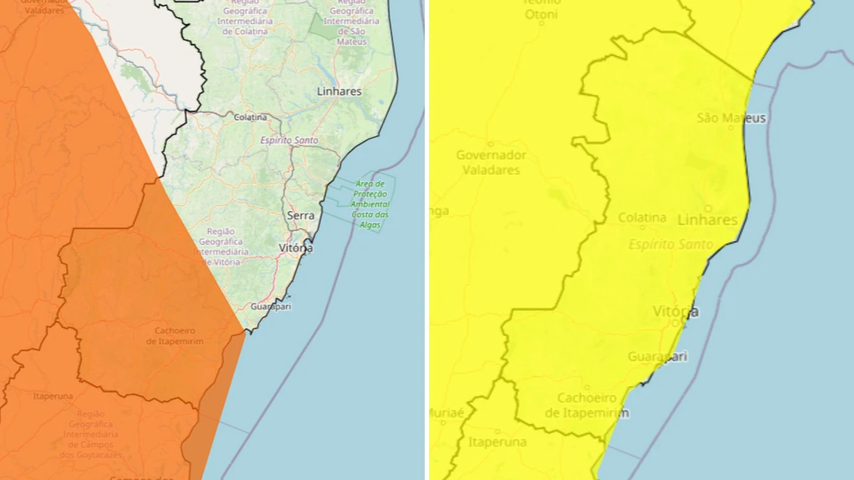 O Espírito Santo recebeu mais dois alertas de chuvas intensas do Instituto Nacional de Meteorologia (Inmet) nesta quarta-feira (4). O aviso laranja afeta 33 municípios capixabas e tem validade até a próxima sexta-feira (6). Já o amarelo abrange todo o Estado com duração até às 10h de sábado (7). Além deles, o órgão também ampliou a possibilidade de tempestade e granizo para todo o território espírito-santense nesta quarta.>