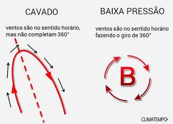 Segundo a Climatempo, cavado é o nome que se dá a uma região na atmosfera onde ocorre uma ondulação do fluxo de ventos no sentido horário no Hemisfério Sul e onde há também uma tendência à queda da pressão atmosférica. >
