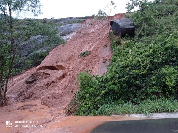 Segundo o coordenador da Defesa Civil do município, Daniel Rocha, a interdição de uma das pistas da ES 257 foi feita ainda durante a manhã. Houve deslizamento de terra na pista e um bloco de pedra no topo do morro tem risco de deslizar. Os motoristas seguem por meio de desvio do outro lado da rodovia. >