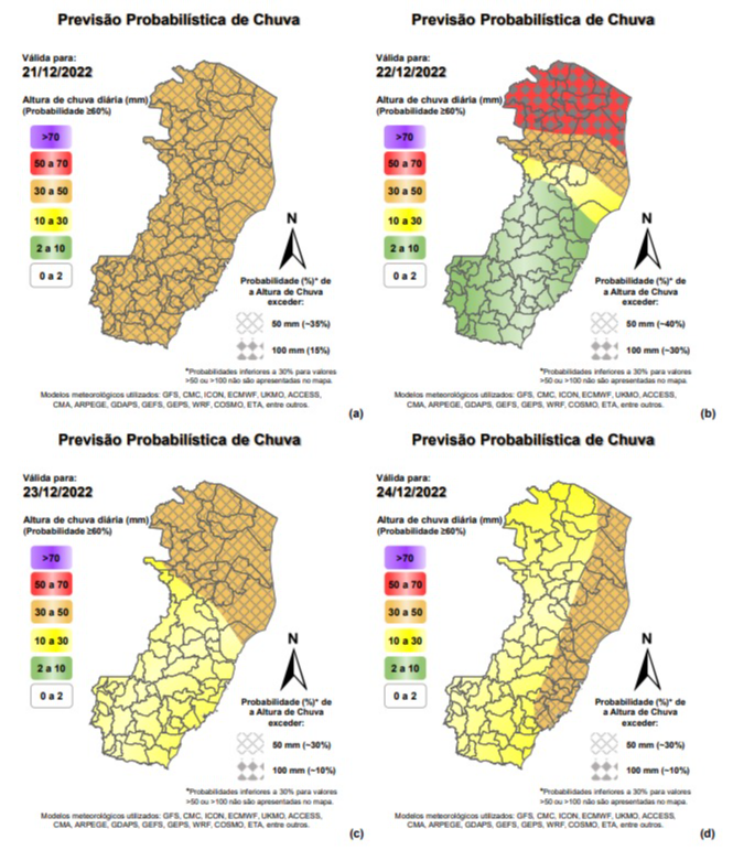 “A Zona de Convergência do Atlântico Sul (ZCAS) migra nesta quarta-feira (21) para Vitória, provocando muita chuva até sexta-feira (23)”, conta. A partir de sexta-feira, a previsão é que o tempo melhore um pouco no Estado.>