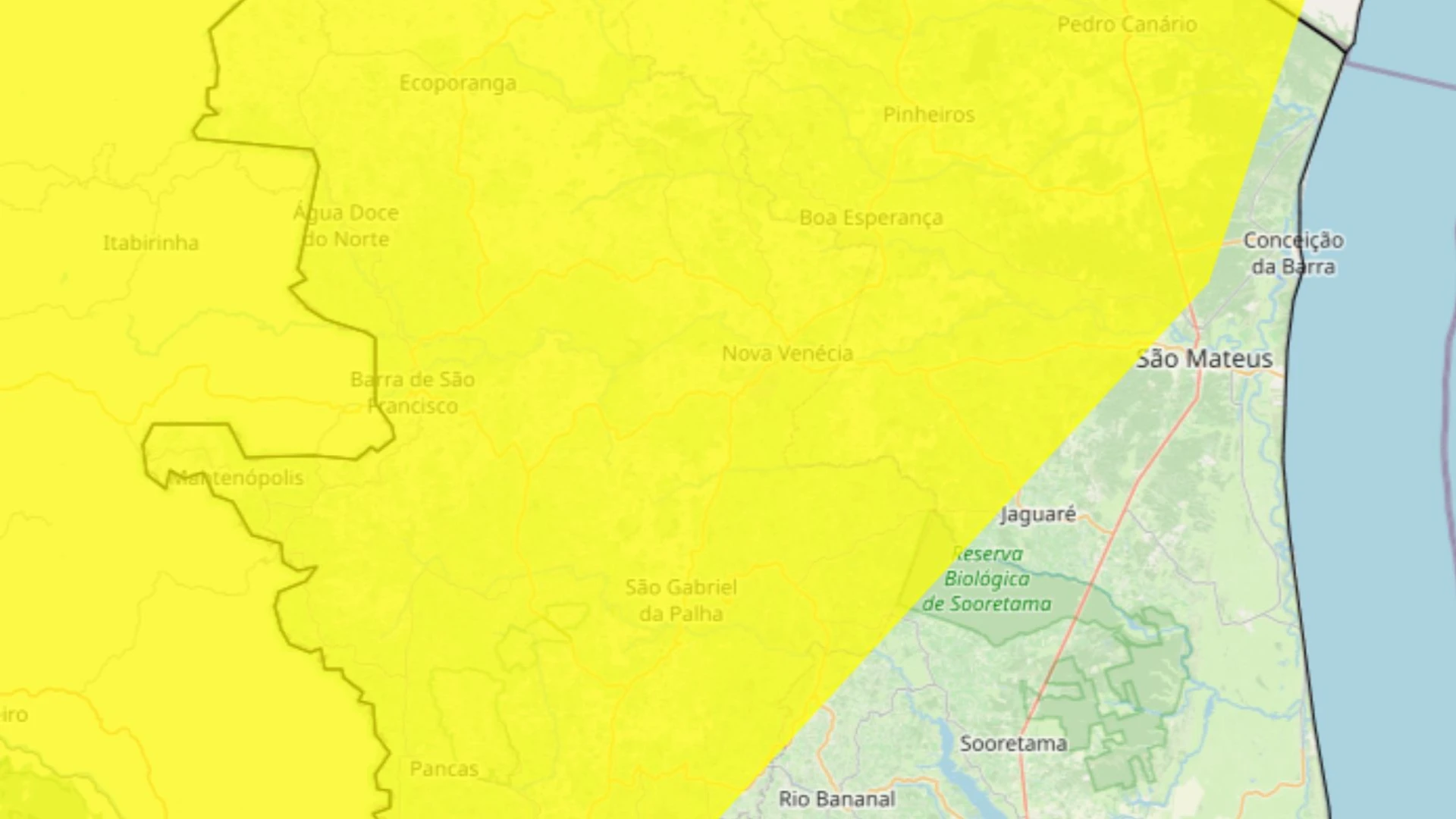 O Instituto Nacional de Meteorologia (Inmet) emitiu um novo alerta laranja de chuvas e ventos intensos para 62 cidades do Espírito Santo nesta sexta-feira (3) — veja a lista abaixo. Segundo o instituto, há risco de corte de energia elétrica, queda de galhos de árvores, alagamentos e descargas elétricas. O alerta é válido das 12h desta sexta (3) até as 10h do sábado (4).>