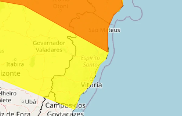 Um segundo aviso, de perigo potencial (cor amarela) foi emitido para todo o Estado. O Inmet alerta que há possibilidade de chover até 30 mm por hora, ou até 50 mm ao longo do dia, com ventos de até 60 quilômetros por hora.>
