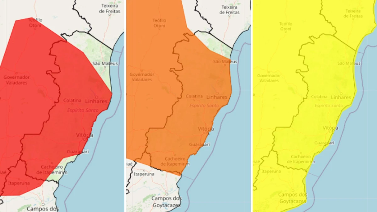 O Instituto Nacional de Meteorologia (Inmet) emitiu três novos alertas para o Espírito Santo nesta terça-feira (20): um vermelho, o mais grave, para alagamentos, e dois mais brandos, um laranja e um amarelo, prevendo chuvas intensas. >