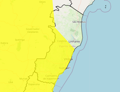 O Instituto Nacional de Meteorologia (Inmet) emitiu um alerta de perigo potencial de chuvas intensas em boa parte do Espírito Santo. O aviso de cor amarela (mais baixo na escala de risco) abrange 63 municípios, sendo válido durante toda a sexta-feira (30). >