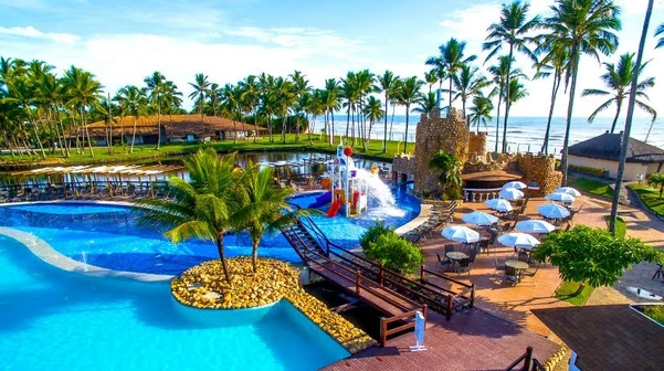 O Cana Brava Resort, em Ilhéus, à beira da Praia de Canabrava, é uma excelente escolha para um Réveillon All-Inclusive na Bahia. Com 70 mil m² de área, o resort oferece três restaurantes e seis bares, incluindo dois nas piscinas e um funcionando até 2h da manhã. A estrutura de lazer inclui duas piscinas (uma com playground aquático), campo de futebol, lago com águas medicinais para caiaque e stand up paddle, além de quadras, salão de jogos, cinema, academia, sauna, massagens e outras atividades — ideal para uma virada animada e completa.