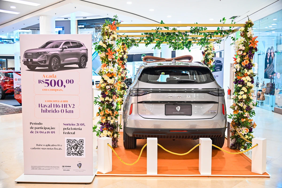 No período de 24 de abril até o dia 18 de maio, a cada R$ 500,00 em compras nas lojas participantes, o cliente concorre a um GWM Haval H6 HEV2 híbrido zero km, mediante o cadastro das notas fiscais no aplicativo do Shopping Vitória. >