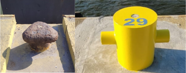 Substituição de 16 cabeços para um novo padrão, garantindo mais segurança para atracação e desatracação de navios, além de melhorias nas condições operacionais. >