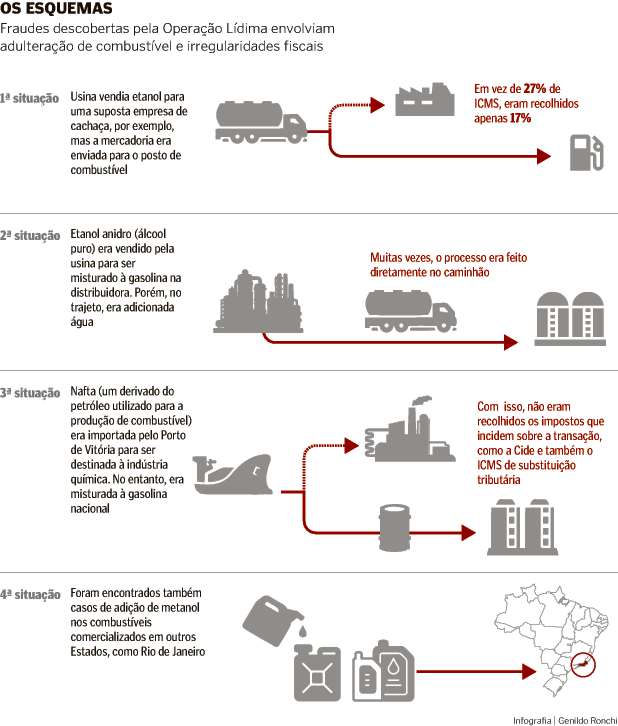 As apurações começaram há dois anos após a Agência Nacional de Petróleo (ANP) encontrar gasolina e álcool fora dos padrões, com adição de metanol, por exemplo, no mercado do Espírito Santo e de outros Estados, como o Rio de Janeiro, São Paulo e Mato Grosso. Em algumas fiscalizações foram ainda identificados combustíveis de baixa qualidade.>