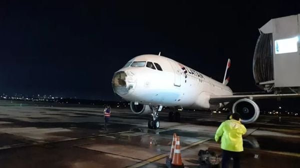 Um avião da Latam Airlines, com 48 passageiros a bordo, sofreu graves danos nesta quarta-feira (26) após enfrentar uma tempestade de granizo na região da fronteira do Paraguai com o Brasil. A aeronave teve que realizar um pouso de emergência após um dos motores e a fuselagem enfrentarem avarias, que incluíram rachaduras no para-brisa. >