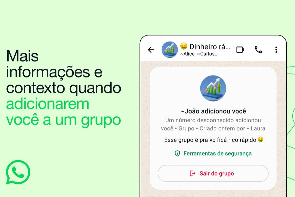 Um balão avisará quem adicionou você, há quanto tempo o grupo foi criado e quem é o "dono". Segundo a Meta (dona do WhatsApp), parte dos usuários já tem acesso à ferramenta, que estará disponível a todos "nas próximas semanas".>