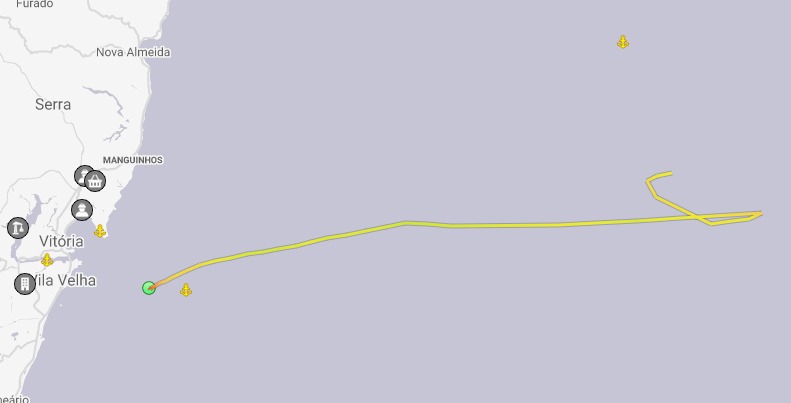 O site apresenta os horários em UTC, a sigla de Coordinated Universal Time, três à frente do horário de Brasília. A manobra em direção a Vitória foi feita por volta das 10 horas (UTC). Portanto, perto das 7 horas do horário local.>