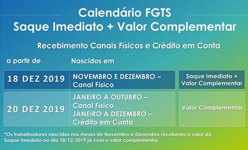 O prazo limite para fazer o saque imediato é 31 de março de 2020. A Caixa alerta, entretanto, que à medida que o trabalhador vai adiando seu saque, ele ficará sujeito ao efeito cumulativo dos outros calendários, o que acumulará mais pessoas para receber, portanto, poderá enfrentar mais filas. >