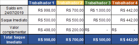 Apenas os beneficiários que tiverem saldo igual ou inferior ao salário mínimo poderão sacar esse valor. Para os que tiverem saldo acima disso, o limite segue de R$ 500. O site da Caixa permite que os trabalhadores consultem o saldo disponível para saque. >